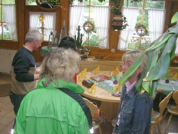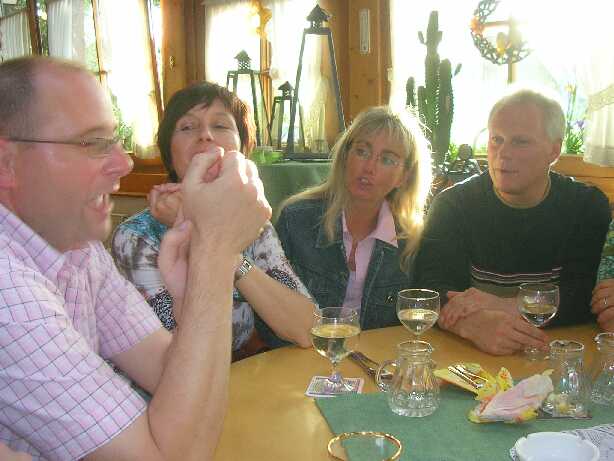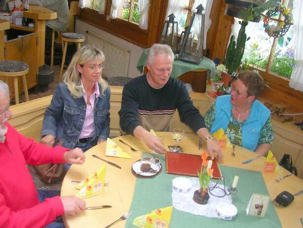 Ein kleines Schwätzchen in EhrenSelbst Ex-Klassenlehrer und Rektor, Gernot Stärk liess sich nicht 2 mal bitten.Jo mei, was git's da zu sehen?Das Objekt der Begierde, eine "Holz Kaminfertigmachanlage" Kleiner Umtrunk auf der Easy-Rider-RanchEinzug im Hader-Karle in WillerschbachUnd d'Maidli wennd scho gau.So ä Bier isch halt scho äbbs scheesHei GertrudUnd Auszug aus dem Hader-Karle